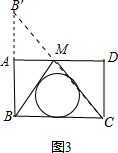 (3)根据设△MBC内切圆的半径为r,根据等积法可得S△MBC=$\frac{1}{2}$BC•AB=$\frac{1}{2}$(MB+MC+BC)•r,可得r=$\frac{24}{MB+MC+BC}$.由于BC已知,要求r的最大值,只需求MB+MC的最小值,延长BA到点B′,使得AB′=AB,连接MB′,如图3,易得MB+MC=MB′+MC.根据两点之间线段最短可得;当B′、M、C三点共线时,MB+MC取到最小值,即B′C长,只需在Rt△B′BC中运用勾股定理求出B′C,就可解决问题.