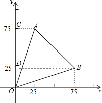 解:(1)由$\left\{\begin{array}{l}{x+y=100}\\{y=3x}\end{array}\right.$得$\left\{\begin{array}{l}{x=25}\\{y=75}\end{array}\right.$,