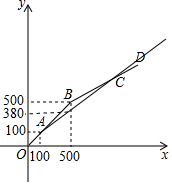(2)画出函数图象,分0≤x≤500及x>500两种情况,找出y2与x之间的函数解析式,结合两函数的解析式即可求出交点A、C的坐标;