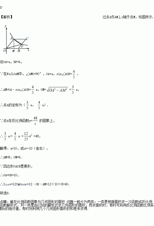 如图,O为坐标原点,四边形OACB是菱形,OB在x轴的正半轴上,sin∠AOB=