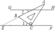 如图所示,将含有30°角的三角板的直角顶点放在相互平行的两条直线其中一条上,