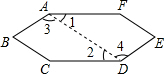 (3)若AB=3,BC=4,CD=2,DE=3,试求六边形ABCDEF的周长.