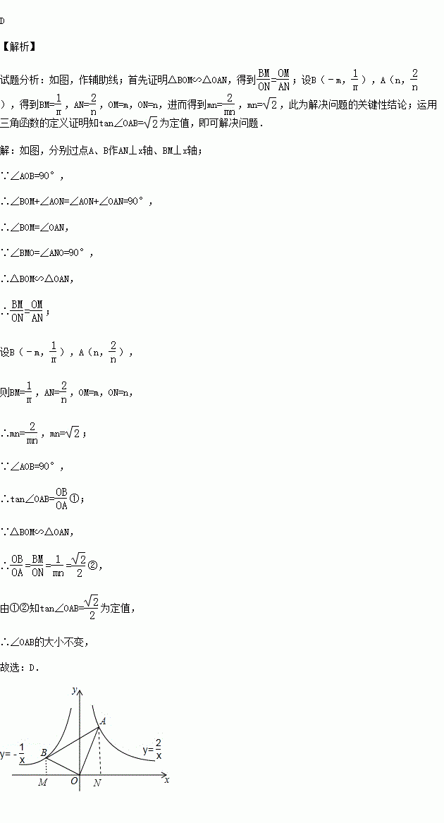 的图象交于B、A两点,则∠OAB的大小的变化趋势为( )