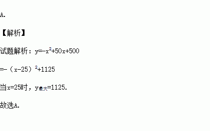 童装专卖店销售一种童装,已知这种童装每天所获得的利润y(元)与童装的销售单价x(元)之间满足关系式y=-x2+50x+500,则要想每天获得最大利润,单价需为( ).