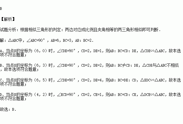 (2013•宜昌)如图,点A,B,C,D的坐标分别是(1,7),(1,1),(4,1),(6,1),以C,D,E为顶点的三角形与△ABC相似,则点E的坐标不可能是( )