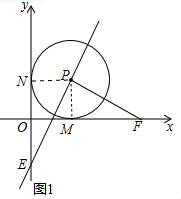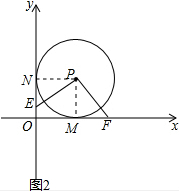 分析 (1)连接PM,PN,由切线的性质得PM⊥MF,PN⊥ON,由P(1,1)得PM=PN,利用全等三角形的判定定理得△PMF≌△PNE,得出结论PF=PE.