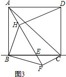 £¨3£©ÉèÕý·½Ðεı߳¤Îª1£¬ÔòAB=AD=1£¬BE=EC=$\frac{1}{2}$£¬¸ù¾Ý¹´¹É¶¨ÀíÇóµÃAE=$\frac{\sqrt{5}}{2}$£¬È»ºóͨ¹ýÖ¤µÃ¡÷AEB¡×¡÷CEF£¬¡÷ADH¡×¡÷EAB£¬¶ÔÓ¦±ß³É±ÈÀýÖ¤µÃCF=AH=$\frac{\sqrt{5}}{5}$£¬È»ºó¸ù¾ÝSASÖ¤µÃ¡÷ABH¡Õ¡÷CBF£¬Ö¤µÃBH=BF£¬¡ÏABH=¡ÏCBF£¬´Ó¶øÖ¤µÃ¡÷HBFÊǵÈÑüÖ±½ÇÈý½ÇÐΣ¬´Ó¶øÖ¤µÃ¡ÏBHF=45¡ã£®