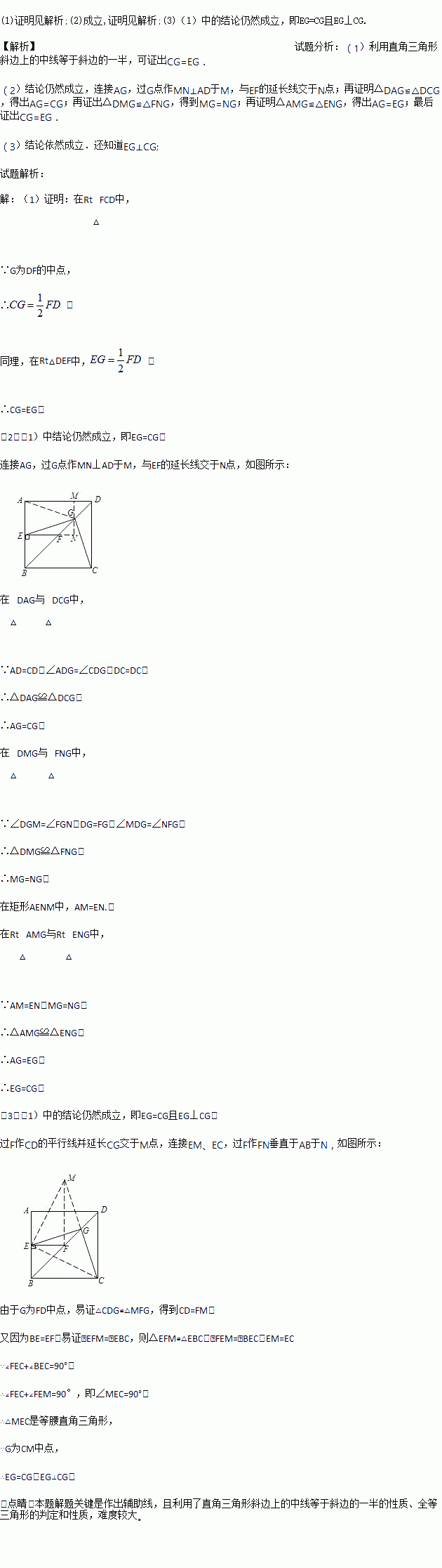 已知正方形ABCD中,E为对角线BD上一点,过E点作EF⊥BD交BC于F,连接DF,G为DF中点,连接EG,CG.