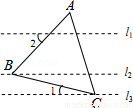 如图,直线l1∥l2∥l3,等边△ABC的顶点B、C分别在直线l2、l3上,若边BC与直线l3的夹角∠1=25°,则边AB与直线l1的夹角∠2=________.