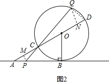 ∵当点P运动到Q、C两点重合时,PC为⊙O的切线,
