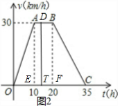 £¨2£©¢Ù·Ö0¡Üt¡Ü10¡¢10£¼t£¼20ÒÔ¼°20¡Üt¡Ü30ÈýÖÖÇé¿ö£¬ÀûÓÃÈý½ÇÐΡ¢¾ØÐÎÒÔ¼°ÌÝÐεÄÃæ»ý£¬ÕÒ³ös£¨km£©Óëʱ¼ät£¨h£©µÄº¯Êý½âÎöʽ£»