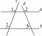 直线a、b、c、d的位置如图,如果∠1=100°,∠2=100°,∠3=125°,那么∠4等于( )