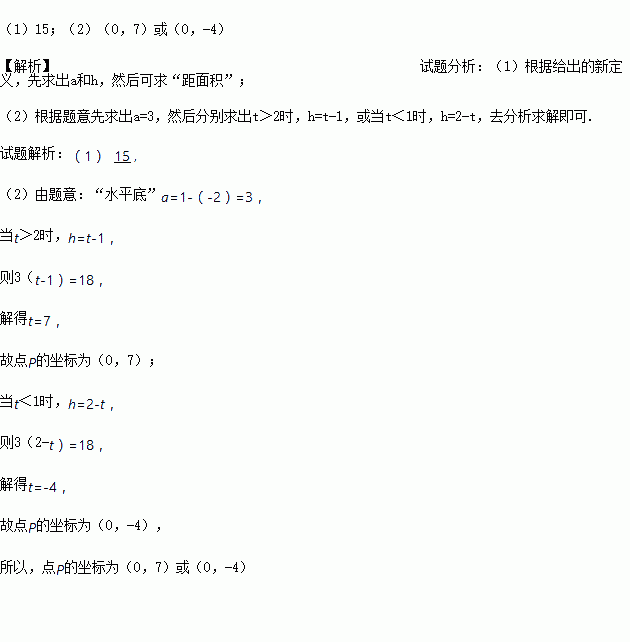(2)若D(1,2)、E(-2,1)、F(0,t)三点的“矩面积”为18,求点F的坐标;