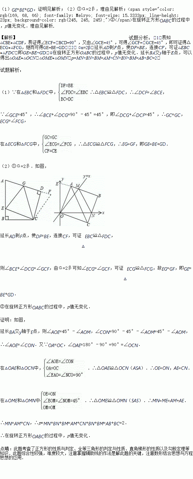 (1)ÔÚͼ1ÖУ¬ÈôGÔÚADÉÏ£¬ÇÒ¡ÏGCE=450.ÊÔ²ÂÏëGE£¬BE£¬GDÈýÏß¶ÎÖ®¼äµÄÊýÁ¿¹ØÏµ£¬²¢Ö¤Ã÷ÄãµÄ½áÂÛ.