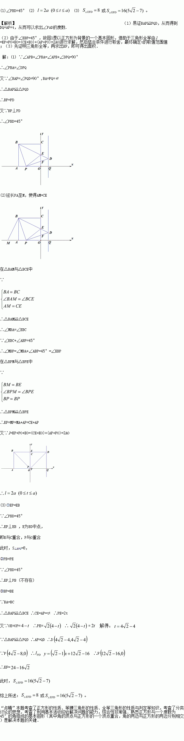 ,当△PBE为等腰三角形时,求△EFD的面积.
