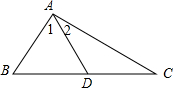 解答 解:如图,∵AD是中线,且AD=$\frac{1}{2}$BC,∴AD=BD=CD,∴∠1=∠B,∠2=∠C,∴∠1+∠2=$\frac{1}{2}$(∠B+∠BAC+∠C)=90°,∴∠BAC=90°.