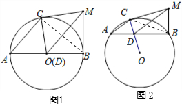 已知AB是⊙O的直径,过B作AB的垂线BM,MC与⊙O相切于C,OC交AB于D,如图1.