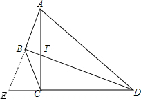 分析:延长DC和AB,它们相交于E,如图,先利用等角的余角相等得到∠BAT=∠CDT,则可根据“AAS”判断△ACE=≌△DCT,则AE=DT,由于BD平分∠APC,BD⊥AE,根据等腰三角形的性质得AB=EB,于是有DT=2AB.
