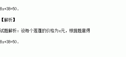 湘潭历史悠久,因盛产湘莲,被誉为“莲城”.李红买了8个莲蓬,付50元,找回38元,设每个莲蓬的价格为