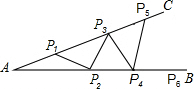 分析 由于焊上的钢条长度相等,并且AP1=P1P2,所以∠A=∠P1P2A,则可算出∠P2P1P3的度数,并且和∠P1P3P2度数相等,根据平角的度数为180度和三角形内角和为180度,结合等腰三角形底角度数小于90度即可求出最多能焊上的钢条数.