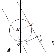 (3)如图3中,①当⊙M向下平移时,⊙M与直线的切点为C,作ME∥直线l,作ED⊥直线l于D.则四边形MCDE是矩形,![]()