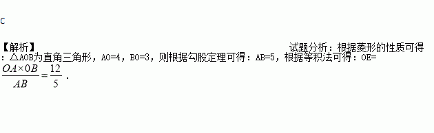 如图,菱形ABCD中对角线相交于点O,且OE⊥AB,若AC=8,BD=6,则OE的长是( )