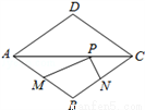如图,菱形ABCD的两条对角线分别长6和8,点P是对角线AC上的一个动点,点M、N分别是边AB、BC的中点,则PM+PN的最小值是________.