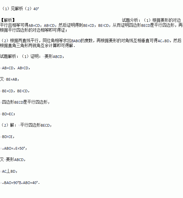 (2)若∠E=50°,求∠BAO的大小.
