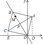 分析 作AD⊥x轴于D,CE⊥x轴于E,根据M的坐标求得直线OM的斜率-$\frac{4}{3}$,进一步得出直线AC的斜率为$\frac{3}{4}$,通过证得△COE≌△OAD,得出CE=OD,OE=AD,所以设A(a,b),则C(-b,a),然后根据待定系数法求得直线AC的斜率为$\frac{b-a}{a+b}$,从而得出$\frac{b-a}{a+b}$=$\frac{3}{4}$,整理得b=7a,然后在RT△AOD中,根据勾股定理得出(7a)2+a2=128,解得a=$\frac{8}{5}$,b=$\frac{56}{5}$.