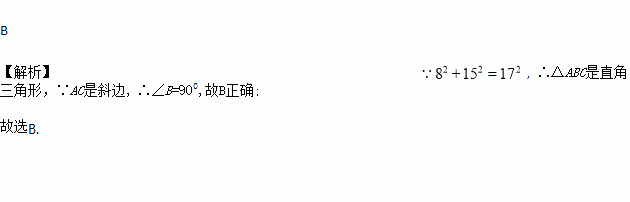 在△ABC中,AB=8,BC=15,AC=17,则下列结论正确的是( )