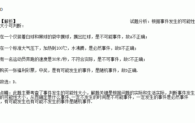 A. 在一个仅装着白球和黑球的袋中摸球,摸出红球