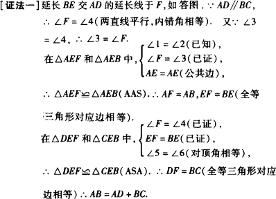 证明线段的和、差倍、分也是平面几何的一种常见问题,主要有证法一、证法二这两种方法.证法二简称截长法,即在较长线段上取一段等于较短线段的一条,再让剩下的一段等于另一较短的线段;证法一简称短法,即把两条短线段补面一条,再让它与长线段相等.