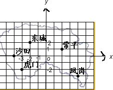分析:在网格上画出直角坐标系让虎门的坐标为(-3,-2),就可看出东城的坐标.