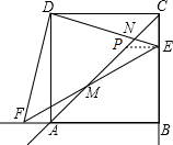 如图,已知正方形ABCD的边长为4,点E、F分别从C、A两点同时出发,以相同的速度作直线运动.已知点E沿射线CB运动,点F沿边BA的延长线运动,连结DF、DE、EF,EF与对角线AC所在的直线交于点M,DE交AC于点N.