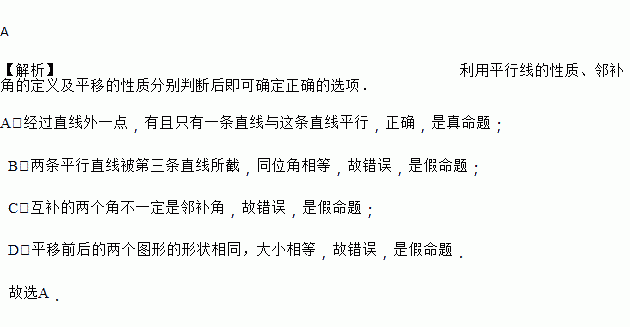 A. 经过直线外一点,有且只有一条直线与这条直线平行