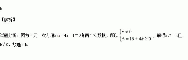 关于x的一元二次方程kx2-4x-1=0有两个实数根,则k的取值范围是( )
