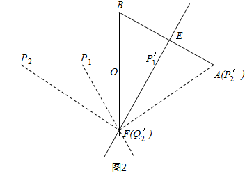 ∴当PO=OA=$\sqrt{3}$时,此时Q2′与F重合,A与P2′重合,