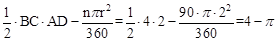 如图,在△ABC中,BC=4,以点A为圆心,2为半径的⊙A与BC相切于点D,交AB于点E, 交AC于点F,点P是OA上的一点,且∠EPF=450,图中阴影影部分的面积为【 】
