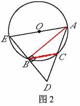 (8分)如图9,在⊙O中,点C为劣弧AB的中点,连接AC并延长至D,使CA=CD,连接DB并延长交⊙O于点E,连接AE.