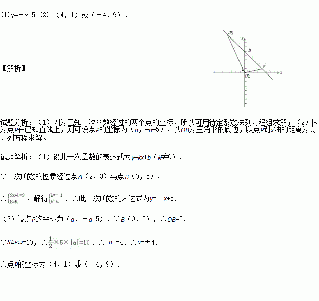 (2)若点P为此一次函数图象上一点,且△POB的面积为10,求点P的坐标.