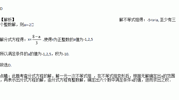 至少有三个整数解,且关于x的分式方程