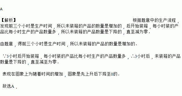 如图所示,某产品的生产流水线每小时可生产100件产品,生产前没有产品积压,生产3h后安排工人装箱,若每小时装产品150件,未装箱的产品数量(y)是时间(x)的函数,那么这个函数的大致图像只能是( )