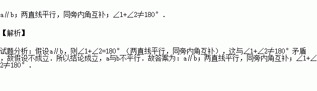用反证法证明:已知直线a、b被直线c所截,∠1+ ∠2≠180°.求证:a