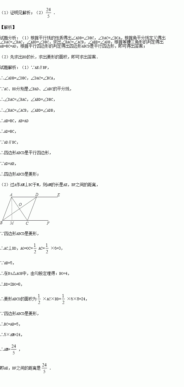 (2)若AB=5,AC=6,求AE,BF之间的距离.