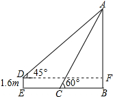 ∵AB-AF=BF=1.6,则x•sin60°-x•sin45°=1.6,