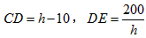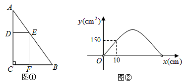 如图①,在Rt△ABC中,∠C=90°,边BC的长为20cm,边AC的长为hcm,在此三角形内有一个矩形CFED,点D,E,F分别在AC,AB,BC上,设AD的长为xcm,矩形CFED的面积为y(单位:cm2)。