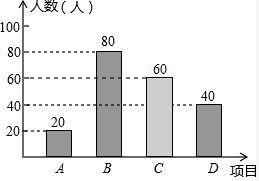 答:该校喜欢D项目的人数约为380人.