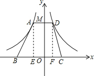 分析:首先根据点A在双曲线(x<0)上,点D在双曲线(x>0)上,得出矩形AEOM面积和矩形MOFD面积,再利用S△ABE+S△DFC=S矩形AEFD进而求出S梯形ABCD即可.