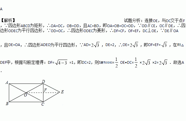 .如图,矩形ABCD的对角线AC与BD相交于点Q,CE∥BD,DE∥AC,AD=