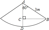 ∵在Rt△ABC中,AB=3m,∠CAB=60°,
